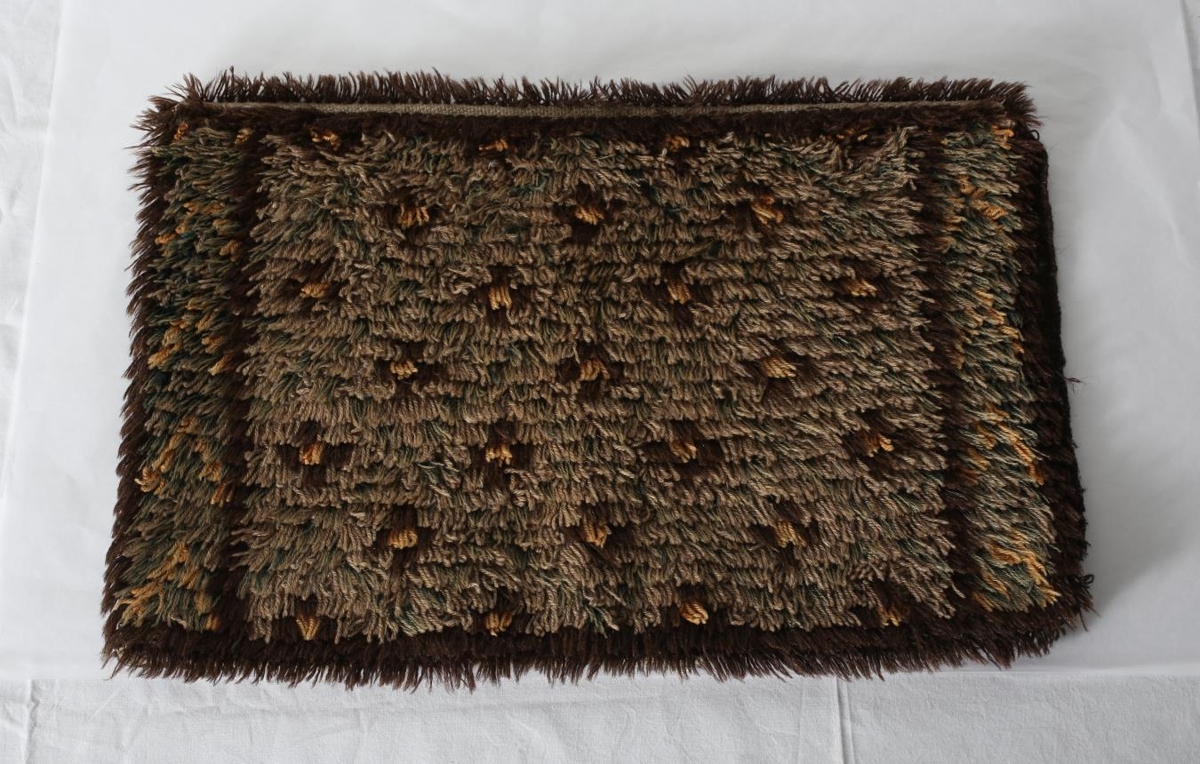 Púði sem saumaður er í heimaofin grunn með rýjasaumi. Púðinn hefur verið fylltur með fiðri. Kom til safnsins úr búi Sigurðar Blöndal skógræktarstjóra og Guðrúnar Sigurðardóttur á Hallormsstað.