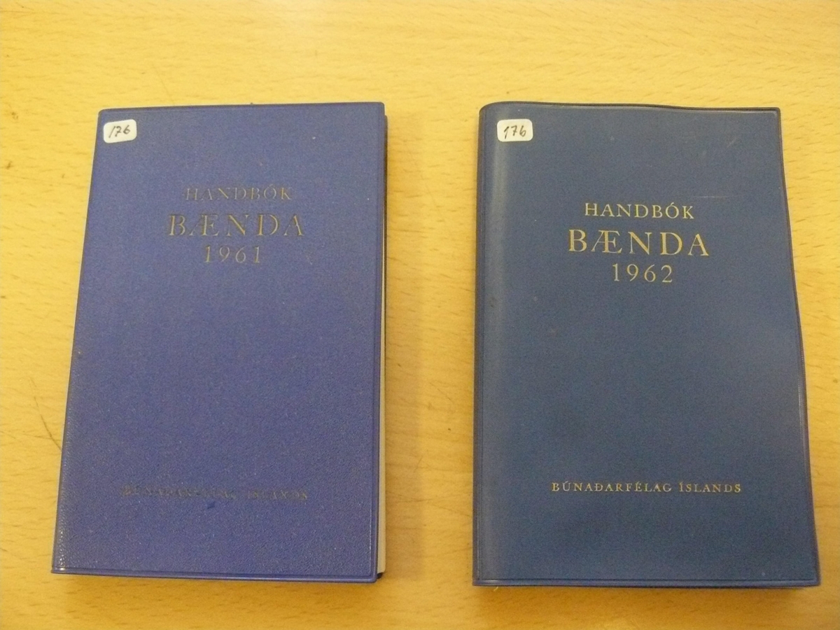 Handbók Bænda, tvær bækur frá árinu 1961 - 1962, útgefandi: Búnaðarfélag Íslands. Gefandi: Þorsteinn Sigurberg Sigvaldason (1935 - 2006), sonur hjónanna Sigvalda Sveinbjörnssonar frá Eiði í Garði og Ingibjargar Þorsteinsdóttur.