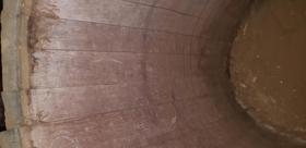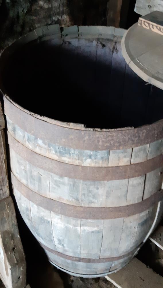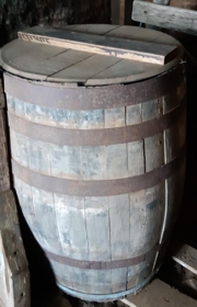 Tunna úr brenni, um 88 cm há og 56,5 cm að þvermáli við botna. Gjarðir eru fimm, þar af ein nýleg en hinar ryðgaðar. Tunnan er rauð að innan, og er hún undan áfengi, og ber lokið ýmsar áletranir þar að lútandi. Lok laust með einu oki.