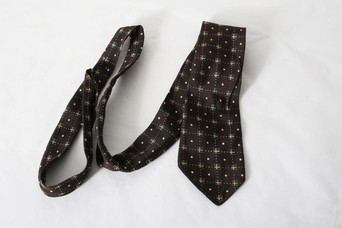 Dökkbrúnt herrabindi með ljósum krossum og doppum. Kom úr búi Sigrúnar Jóhannesdóttur frá Surtsstöðum og manns hennar Björns Sigbjörnssonar.