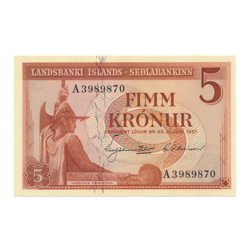 5 krónu seðill úr seðlaröð Landsbanka Íslands - Seðlabanka.