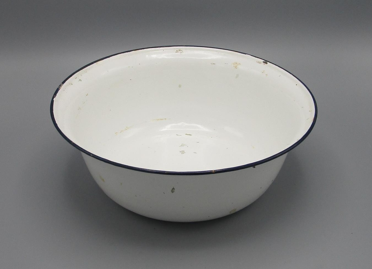 Vaskafat. Emelerað hvítt með blárri rönd.