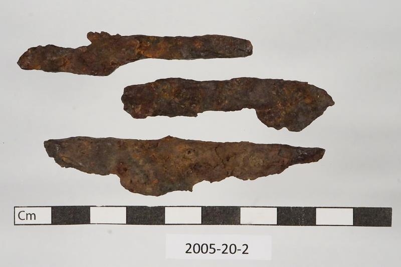 Þrjú hnífsblöð, eitt þeirra er með tanga. Lengd stærsta blaðsins er 7,15 sm, breidd 1,44 sm þar sem hún er mest og þykkt blaðsins er 0,31-0,09 sm. Blaðið með tanganum er 2,42 sm og taginn er 3,53 sm. 59,5 sm er því heildarlengd hlutarins, breiddin er mest 1,13 sm og þykktin 0,43-0,07 sm. minnsta blaðið er 5,42 sm að lengd og 1,30 sm þar sem það er breiðast. Þykkt þess er 0,16-0,07 sm.
