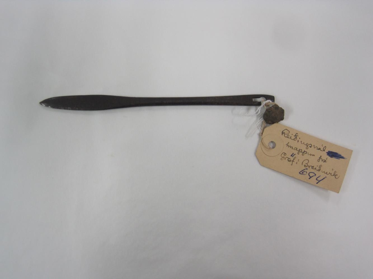 Reiðingsnál og hnappur.