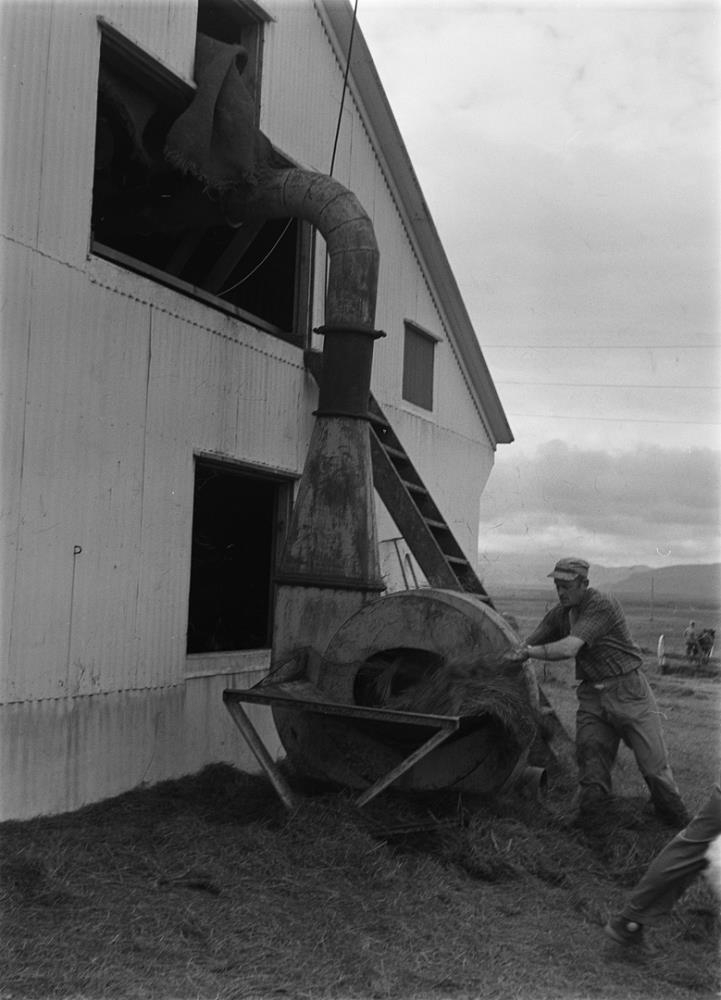 „Sigurður Hannesson bóndi í Stóru-Sandvík í Flóa mokar í blásara.“ (LP 2022)