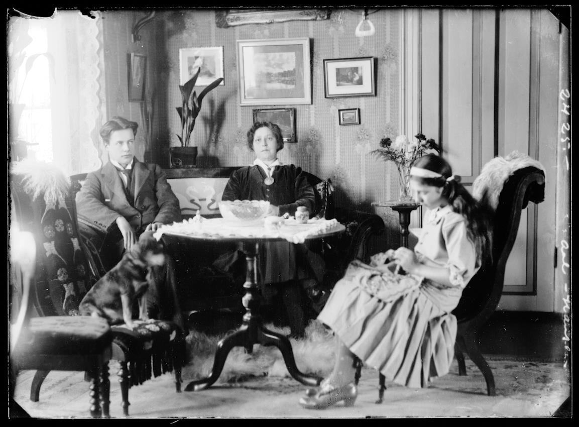 3 saman, tekið heima. Fjölskyldan Aall-Hansen, Þingholtsstræti 28. Norsk kaupmannsfjölskylda.