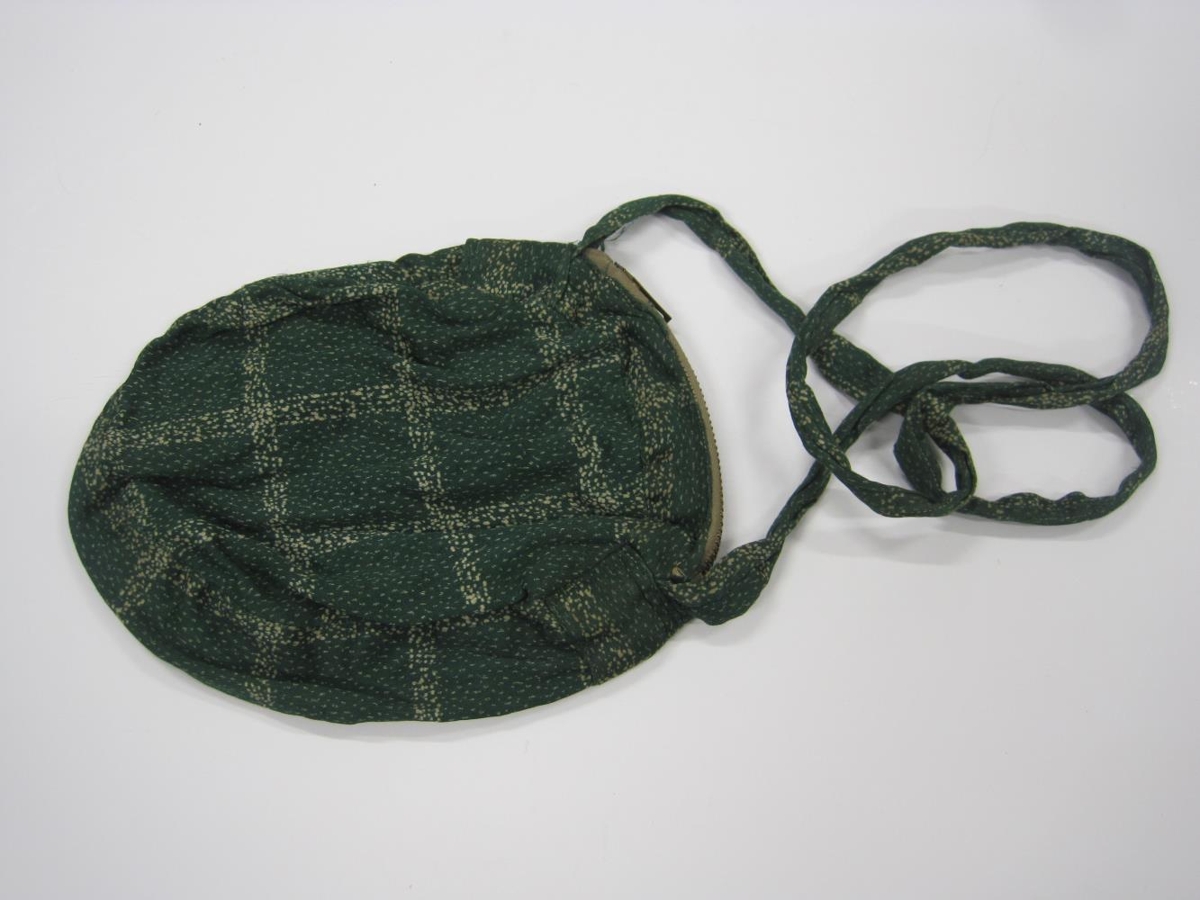 Lítil heimasaumuð taska með rennilás.