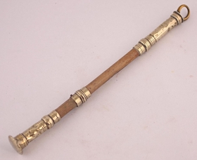 Svipuskaft úr spanskreyr, nýsilfurbúið. Það er 21,2 cm langt og 0,9 cm að þvermáli um miðju. Hólkar eru þrír, úr nýsilfri. Hinn aftasti er 4,8 cm langur með flötum hnúð á enda, 2 cm í þvermál, og gengur af honum brún upp á hólkinn. Nær efst á hólknum um 0,6 cm breið gjörð umhverfis. Miðhólkurinn er 1,6 cm langur og á honum þrjár gjarðir, sú í miðjunni er stærst.