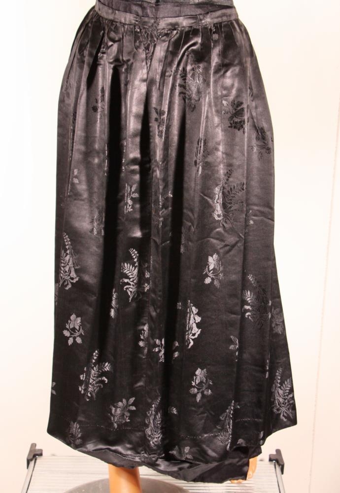 Peysufatasvunta úr svörtu silki, þéttu með blómamynstri ofnu í. Sídd 84 cm. Streng vídd alls 84 cm.