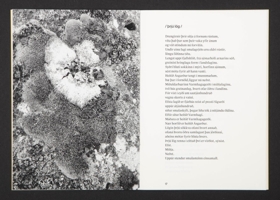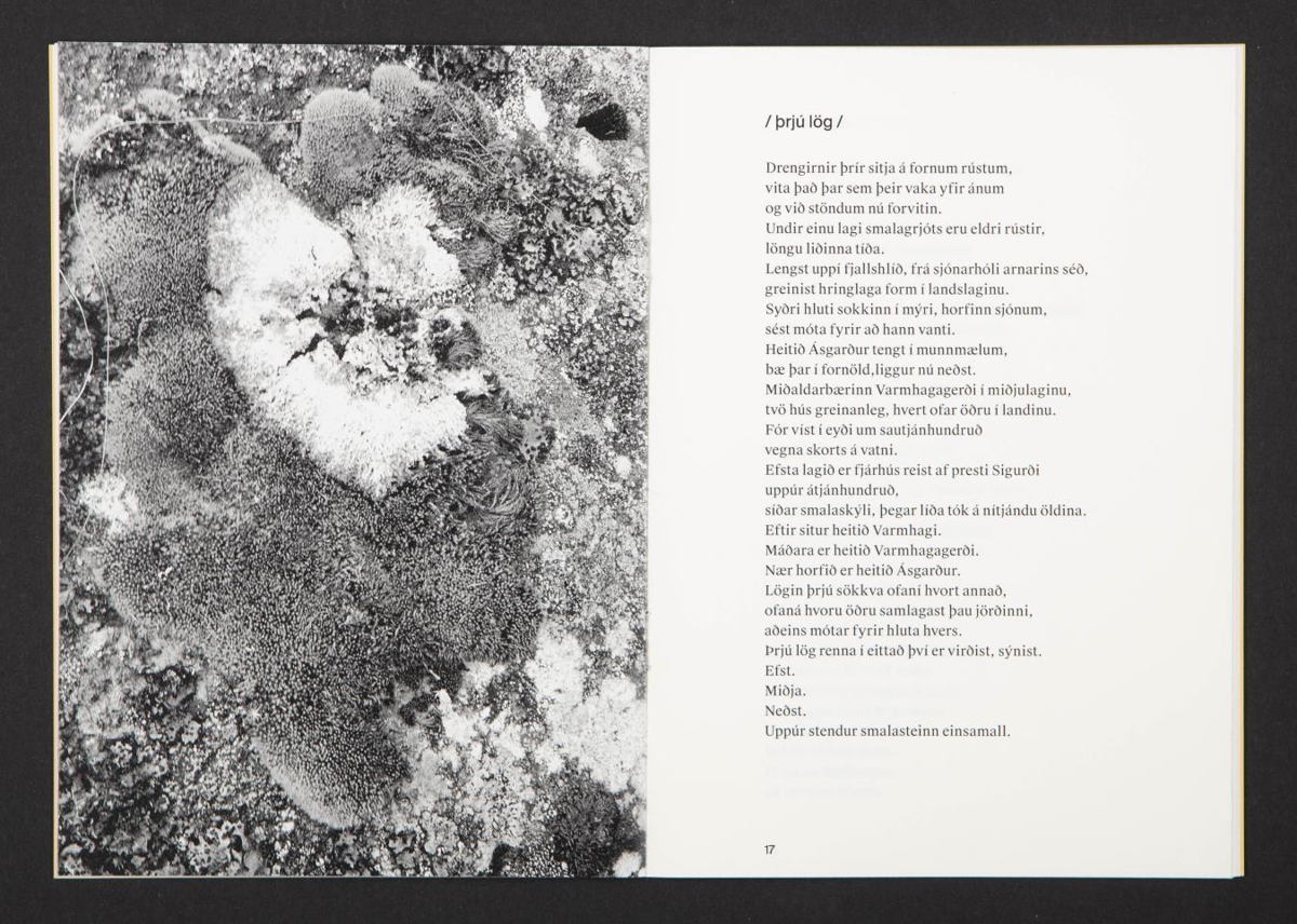 Bókin er 28 tölusettar blaðsíður, heftuð með mjúkum okkur-gulum spjöldum. Texti á íslensku og litljósmyndir. Letur: Suisse Works og Suisse Int'l. Pappír: Munken Pure Rough 100 gr. Colorit 120 gr. Prentun Ásprent, Akureyri.