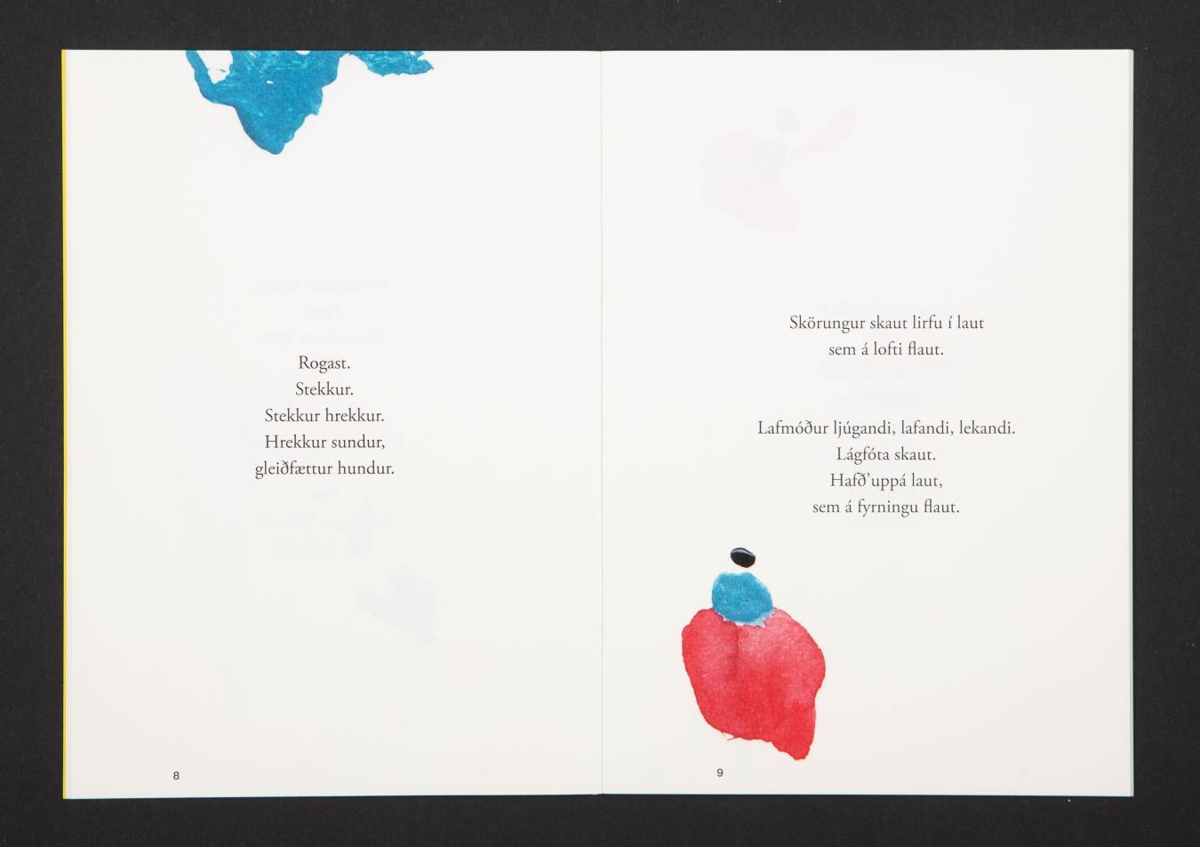 Bókin er 28 tölusettar blaðsíður, heftuð með mjúkum gulum spjöldum. Texti á íslensku og litljósmyndir. Letur: Suisse Works og Suisse Int'l. Pappír: Munken Pure Rough 100 gr. Colorit 120 gr. Prentun Ásprent, Akureyri.