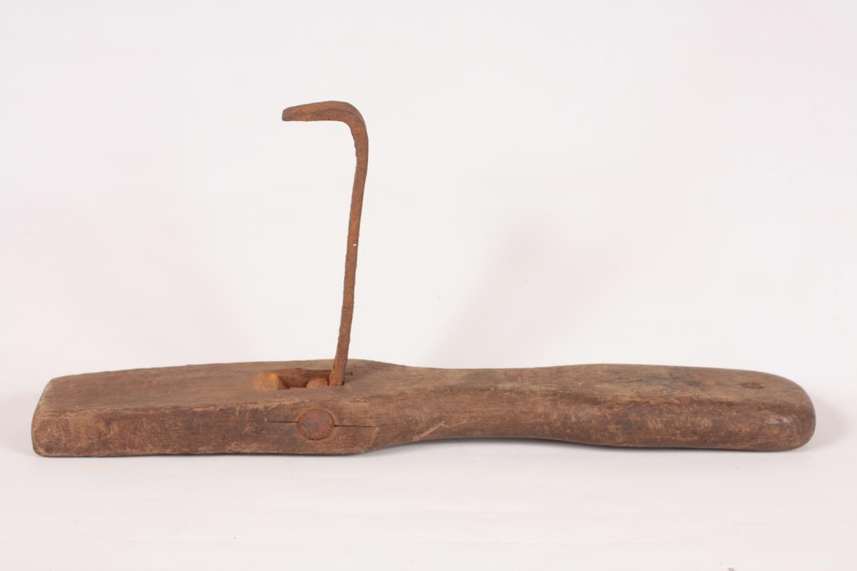 Tunnufjöl (fura) með járnvinkli. Í eigu Óskars B. Stefánssonar (f. 1901) beykis á Sauðárkróki frá 1937. Notuð til að þvinga gjarðir á tunnu. Gefandi er Páll Óskarsson, Háuhlíð 14. Sauðárkróki.