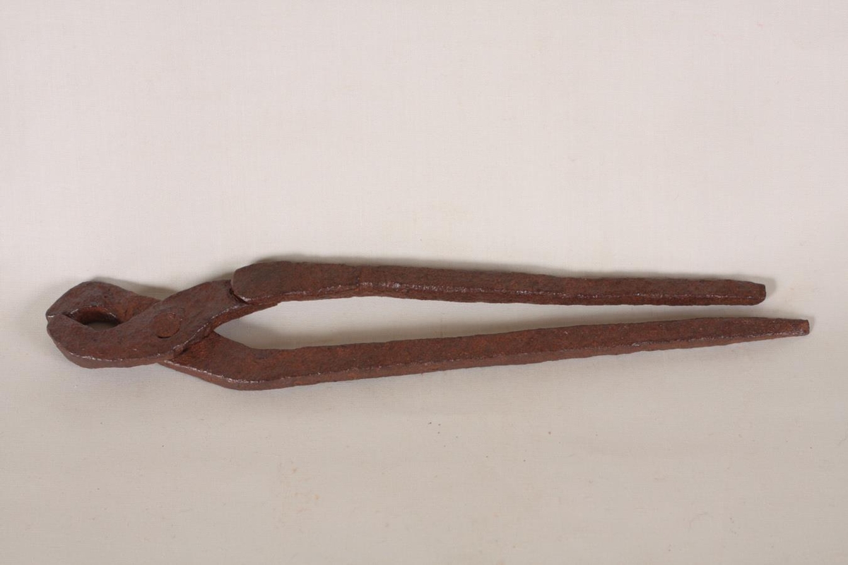 Smiðjutöng úr járni, lengd 26,5 cm (óvenju stutt). Heimasmíðuð, annar tanginn er 1,5 cm. styttri en hinn. Keypt á uppboði. Gefandi er Andrés H. Valberg, sem segir töngina komna frá Bjarna Magnússyni, járnsmið á Sauðárkróki. Reikna má með því að Bjarni hafi smíðað hana sjálfur.