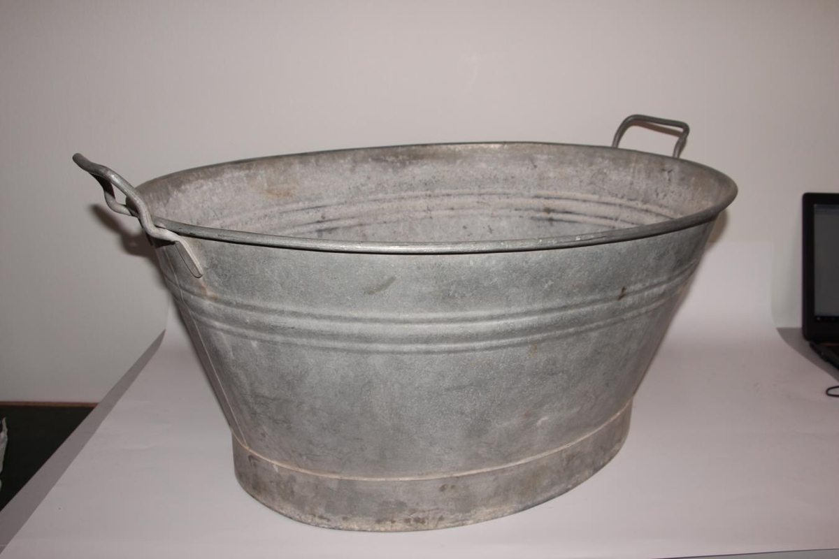 Þvottabali úr járni. Hæð: 24 cm. Lengd mest: 70,5 cm. Vídd mest: 47 cm. Balinn er merktur á annarri hliðinni BELDRAY.