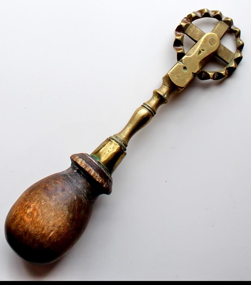 Kleinujárn úr kopar með furuhaldi. Hjólið er með fjórum götum við krossinn. Haldið er 5,3 cm á lengd og mesta þvermál er 3,3 cm. Það er fremur kúpt, örlítið sprungið eftir endilöngu á einum stað. Notað til að skera út kleinur og fl. Ágætlega vel með farið en sjáanlega mikið notað.