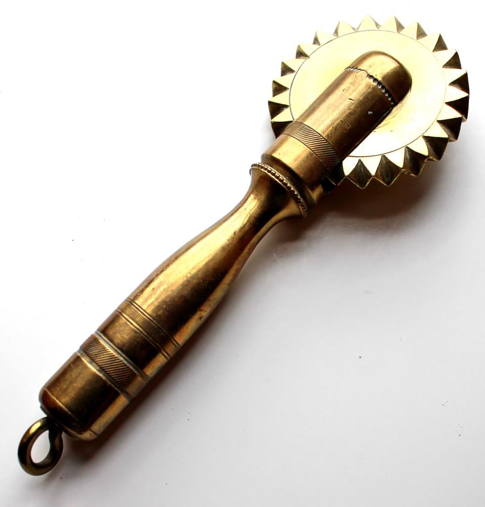Kleinujárn. Þungt og efnismikið úr kopar. Mjög fallegt, örlítið útskorið og vönduð smíð. Hjólið er heilt og þunnt, sjálfsagt mjög gott að vinna með því. Sennilega frá því um aldamót 1900. Notað við kleinuútskurð og fl. Gefandi er Sigríður Kristjánsdóttir í Reykjavík. Gripurinn er úr búi foreldra hennar Kristjáns Gíslasonar og Bjargar Eiríksdóttur á Sauðárkróki.