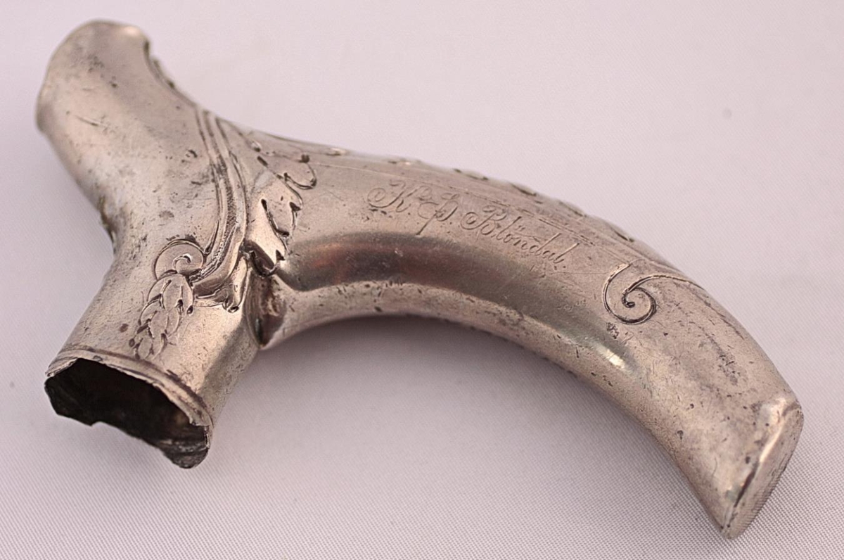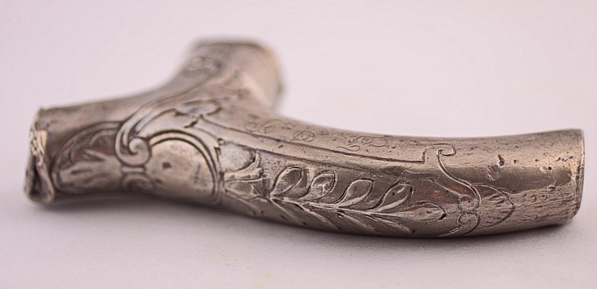 Stafhúnn úr silfri (handfang af staf). Haldlengd: 11 cm. Hólkur gengur niður á stafinn um 2 cm. Húnninn er fínlega skreyttur á hliðum og „baki". Vinstra megin er grafið: K.Þ.Blöndal og hægra megin: Frá A. og V. Eigandi var Kristján Þ. Blöndal, póstmeistara á Sauðárkróki, en hann fékk stafhúninn í afmælisgjöf. Gefandi er Andrés H. Valberg.