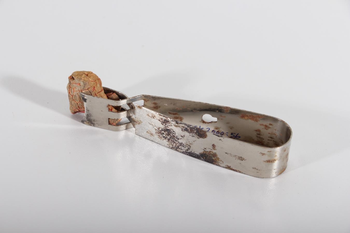 Bréfalakktöng úr pjátri, slaufulaga og grípa gaflar á enda lakkið. Lengd 11,6 cm. Smálakkmoli er í tönginni, einu sinni rauður en orðinn ljósbrúnn að utan vegna hitunar og elli. Breidd tangar er um 2 cm. Gat er á til að hengja hana á vegg. Frá J. Valgarð Blöndal (1902-1965) sparisjóðsstjóra á Sauðárkróki. Gefandi er sonur hans, Árni Blöndal, fyrrverandi kaupmaður á Sauðárkróki.