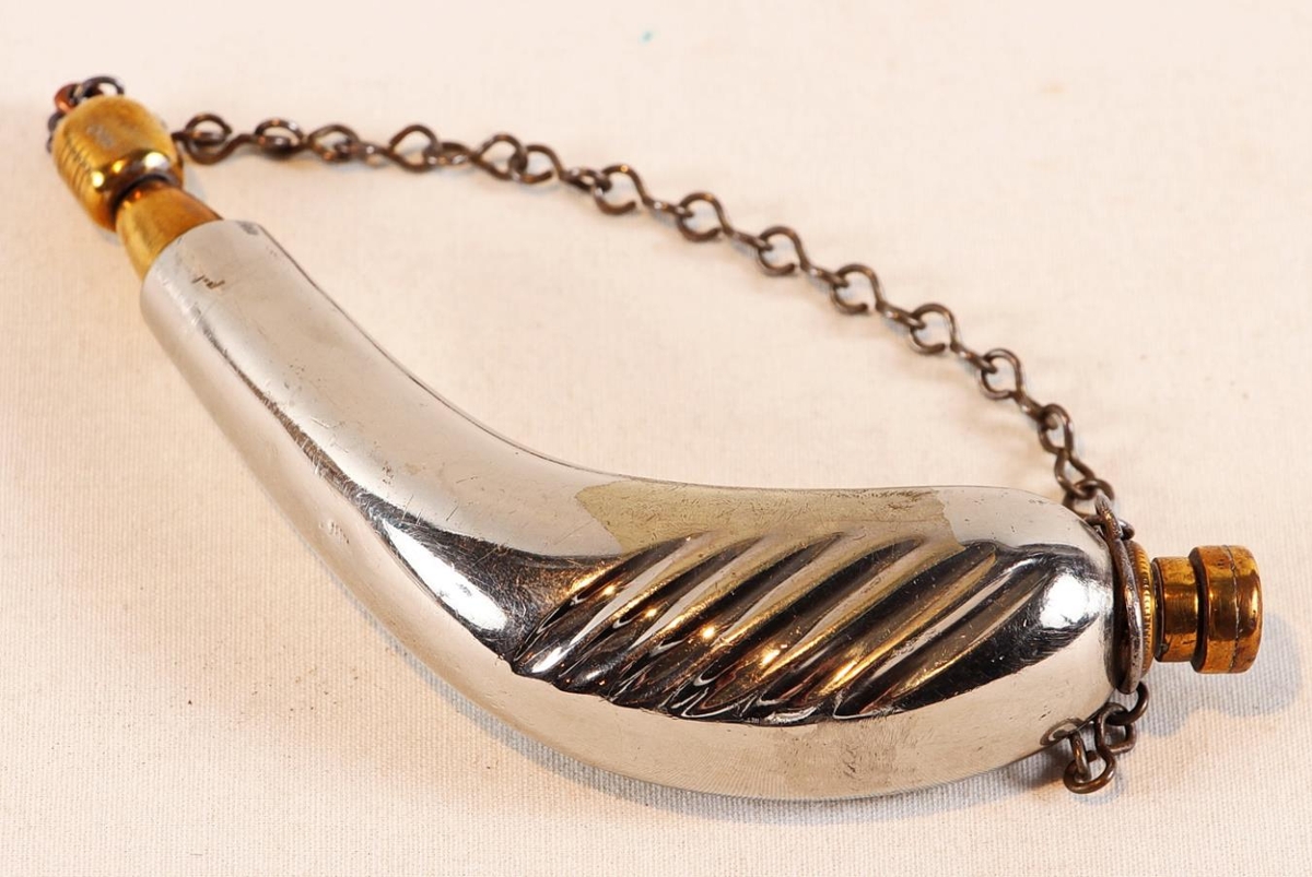 Tóbaksponta úr stáli og kopar. Lengd 16 cm. Að mestu slétt nema rákamynstur neðst á belg, hún er mjó og eins og handfang í laginu.