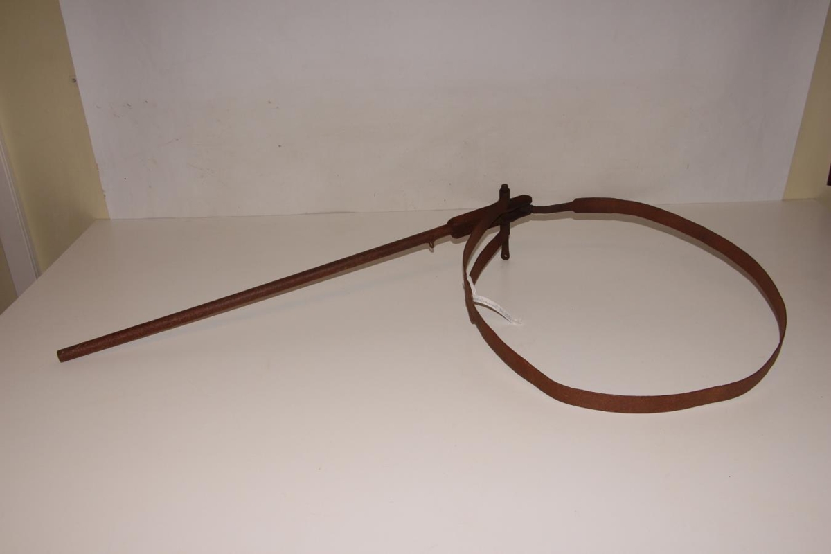 Tunnuþvinga, járntangi á járnlykkju, hringlaga um 44-54 cm í þvm. Tanginn er 83 cm langur.