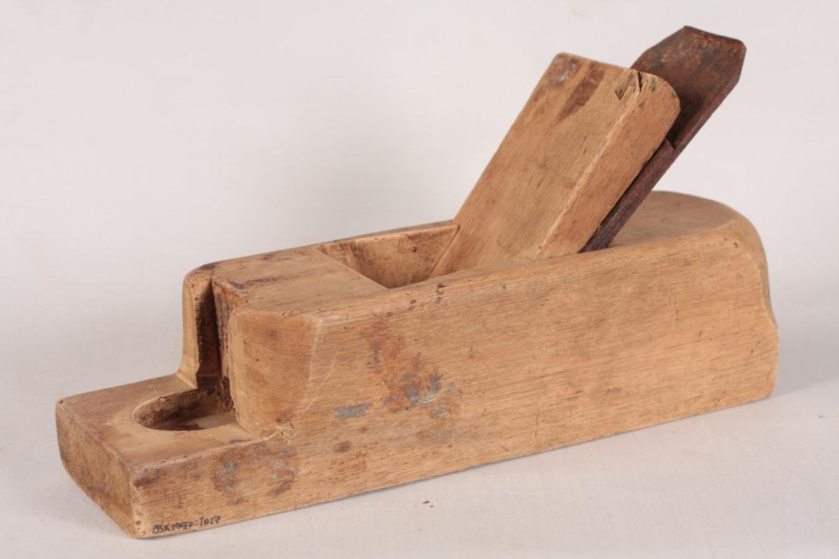 Stutthefill úr furu. Stærð 24 x x 6,8 x 6,5 cm. Notaður til að hefla borðfjalir o.fl. Vantar haldið, en lítur mjög vel út að öðru leyti. Járnið er 18 cm.