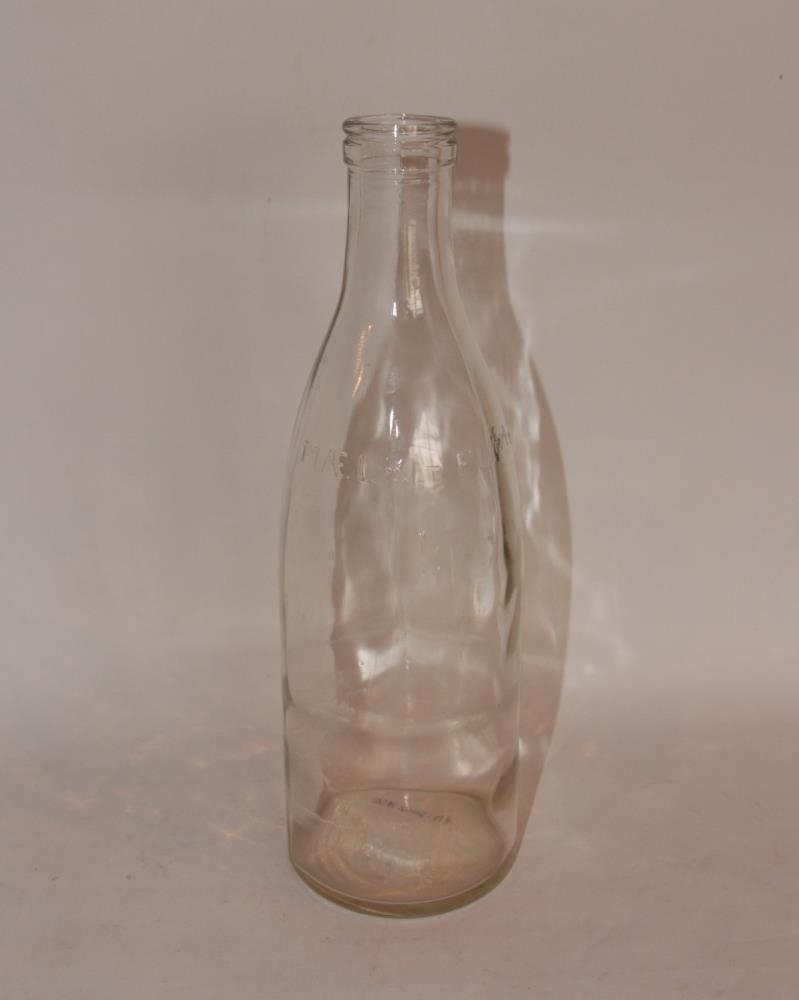 Mjólkurflaska úr gleri, glær. Hæð 28,7 og þvermálið er 8,7 cm. Á henni stendur: MÆLK - FLÖDE 1/1 L og neðan á 8801 10R (KG). Flaskan er frá þeim tíma er mjólk var afgreidd til íbúa Sauðárkróks á flöskum.