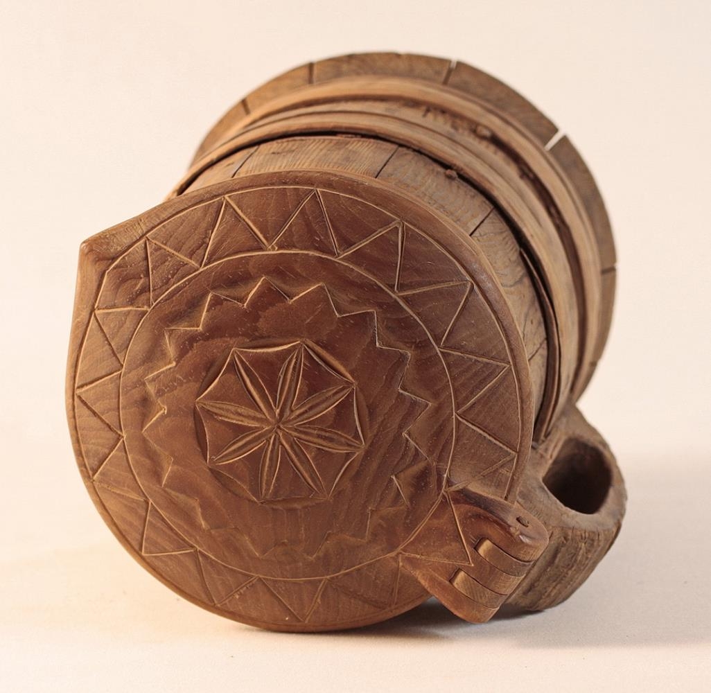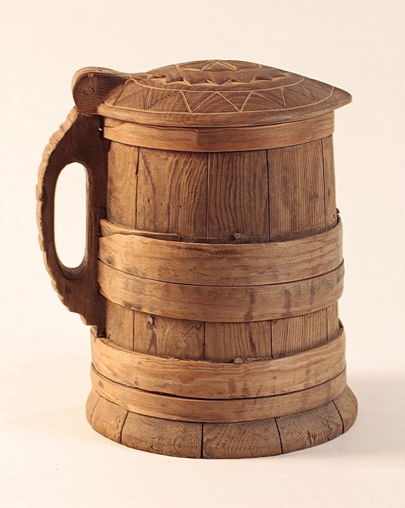 Blöndukanna úr furu. Hún er sett saman úr tólf stöfum, um 18,5 cm háum og misbreiðum, og slá þeir sér út neðst og mynda nokkurs konar stétt undir könnunni. Girði eru fjögur, tvö neðst og tvö um miðju en hafa þó verið fleiri. Haldan er með aflöngu gati og þverröndum að aftan til skrauts. Gert hefur verið við könnuna og nýtt lok var smíðað 1973 af Ingólfi Nikódemussyni.