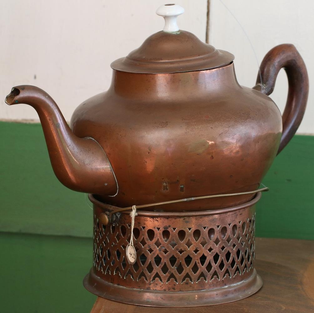 Haldan er úr látúnsvír og leikur á látúnshnöppum. Yfir kerinu er grind, snúin saman úr járnvír, óvönduð og ekki upphafleg.