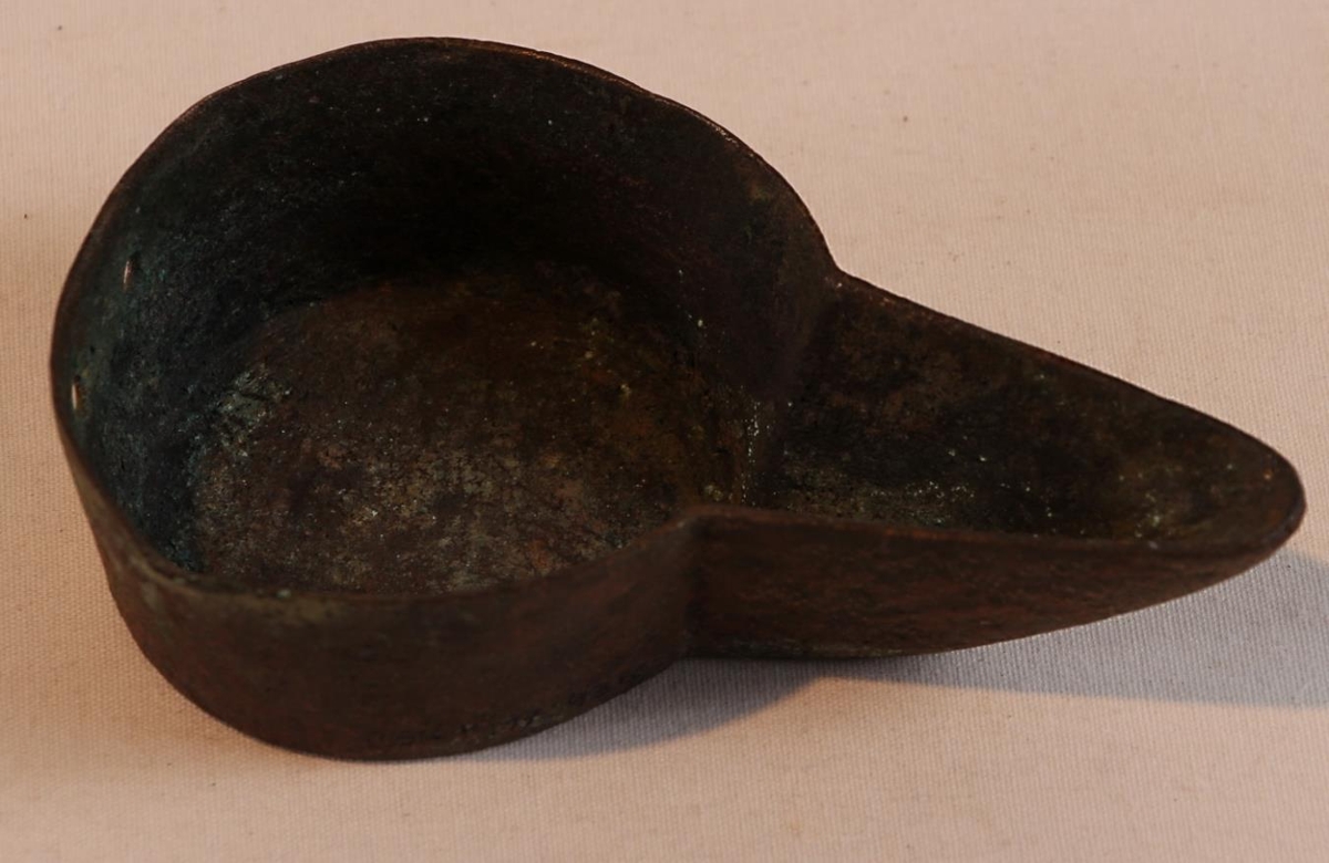 Lýsiskola úr kopar. 2 göt eru aftan á henni til festingar. Steypt og vel með farin. Kolan er úr búi Moniku Sveinsdóttur og Símonar Jóhannssonar bónda í Goðdölum.