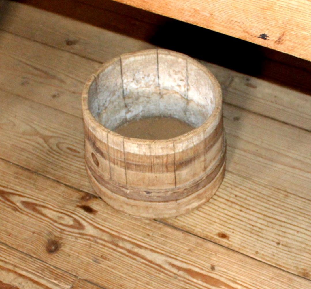 Koppur úr furu. Hann er 13,5 cm hár, þvermál efst 15,2 cm og víkkar koppurinn niður, og dýptin er 11,5-12 cm. Girði eru tvö, en þriðja og efsta girðið vantar. Botninn sprunginn og mikill hlandsteinn (kollusteinn), í koppnum.