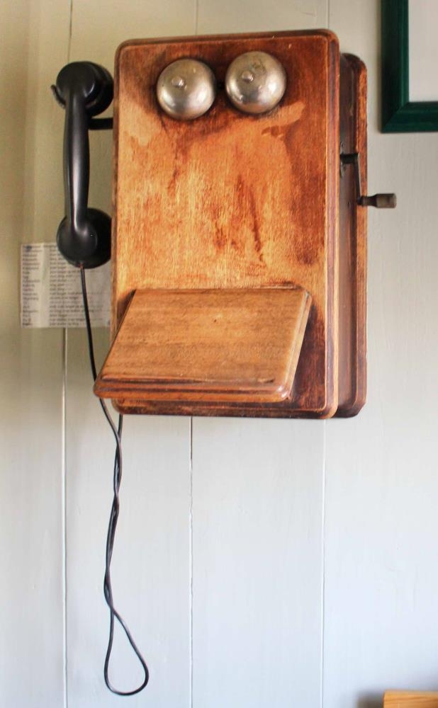 Sími í mahóníkassa, úr húsinu í Ási í Hegranesi. Venjuleg veggsímagerð. Tól úr bekalíti fylgir með og tvær bjöllur eru framan á honum. Hæð um 39 cm, breidd um 24,5 cm, og dýpt 15 cm.