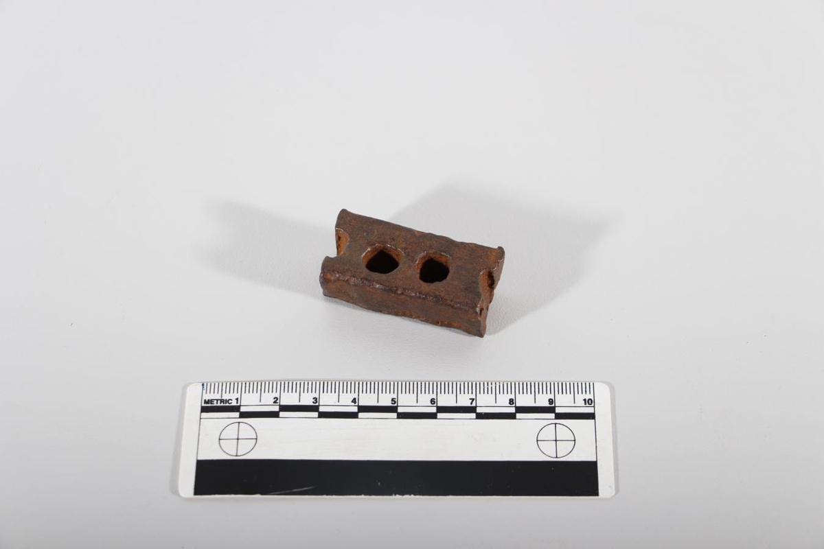 Löð (járnkubbur), 1,6 x 2,1 x 4,5 cm að stærð. Partur af lengri löðum, "til að drepa göt á járn". Notað til að gata járn.