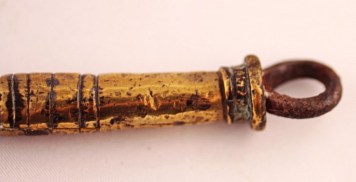 Kvensvipuskaft úr spanskreyr með þremur látúnshólkum.
