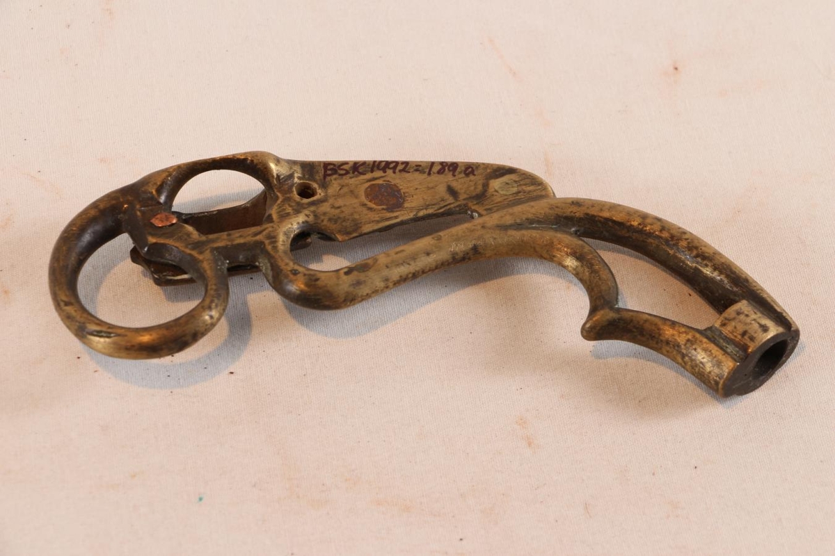 Stangamél (beislisstengur) úr kopar. Lengd 14,5 cm. Það er allt farið af þeim, en þær eru í mjög góðu lagi.