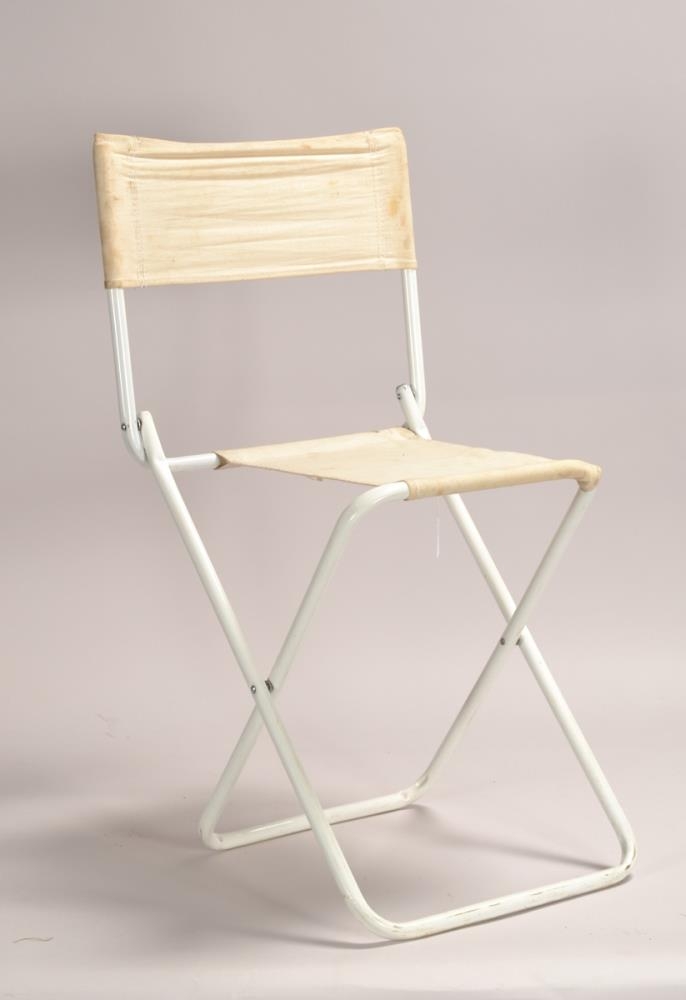 Hvítur samanbrjótanlegur útilegustóll með baki. Fylgir borði (BYR2019-203)