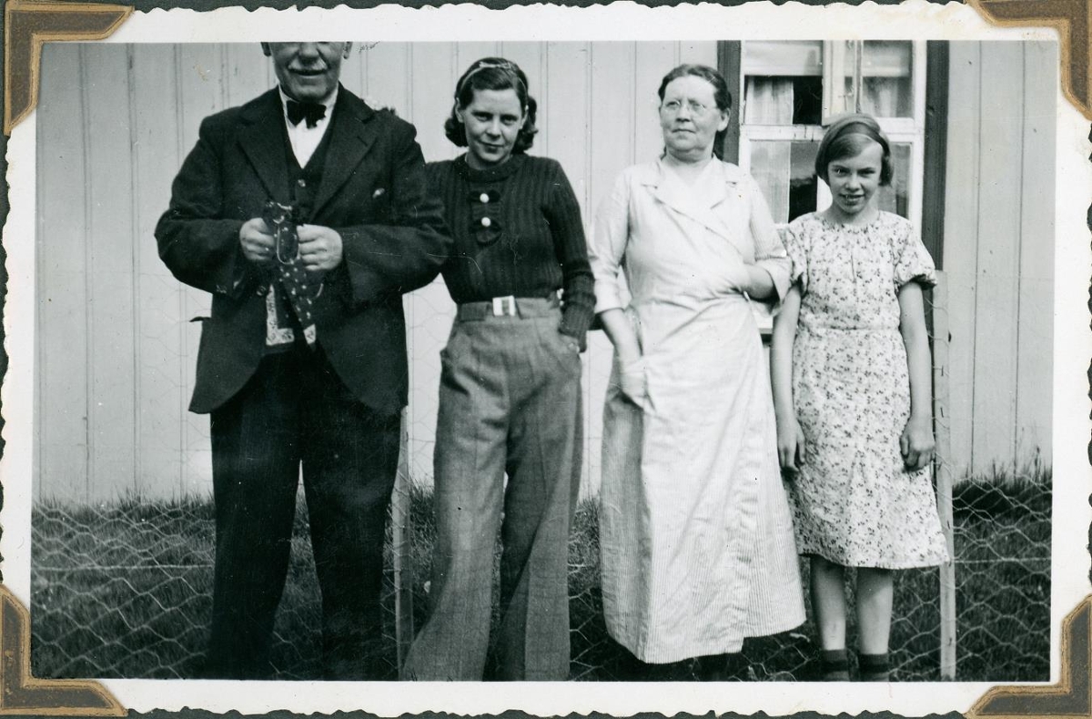 Þrjár konur og einn karlmaður. F.v. Klemenz Klemenzson, Sigríður Klemenzdóttir, Jakobína Sigtryggsdóttir og óþekkt stúlka.