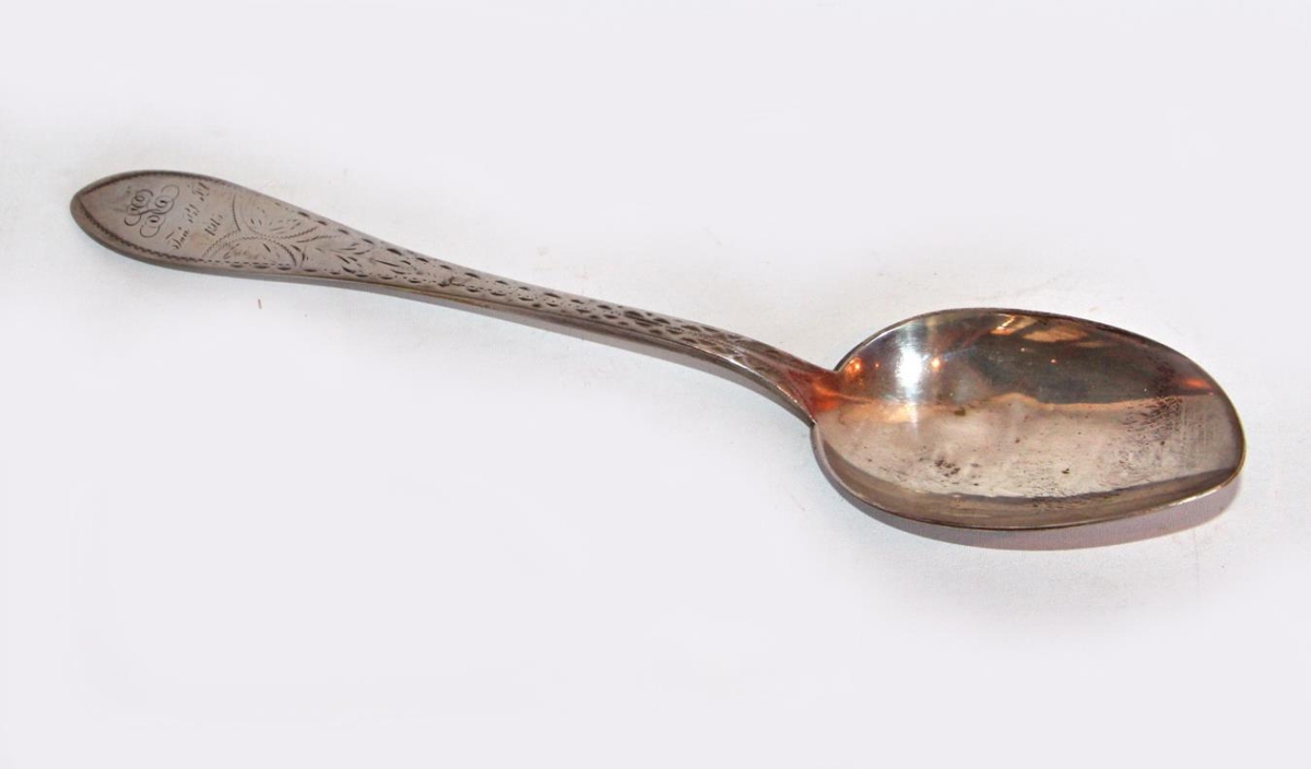 Silfurskeið (matarskeið). Á endann er grafið: "SE. Frá BÍ 1915". Endinn er skrautstunginn og leggurinn allur að skeiðarskálinni. Aftaná eru 3 stimplar. Skeiðin var gefin sem vinnuhjúaverðlaun frá Búnaðarfélagi Íslands 1915 til Svövu Einarsdóttur (1865-1922) í Ási í Hegranesi. Gefandi er Sigurbjörg Sigurðardóttir, Bárustíg 3. Sauðárkróki