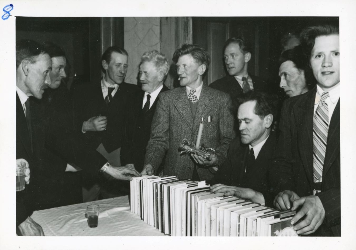 Frá vinstri. Sigtryggur Jónsson á Hrappsstöðum, Skúli Jóhannesson á Dönustöðum, Jón Jósefsson á Sámsstöðum, Einar Þorkelsson á Hróðnýjarstöðum, Þorkell Einarsson á Hróðnýjarstöðum, Helgi Einarsson frá Hróðnýjarstöðum, Sæmundur Bjarnason á Fjósum, Jóhann Bjarnason í Búðardal og Einar Kristmundsson í Rauðbarðaholti.