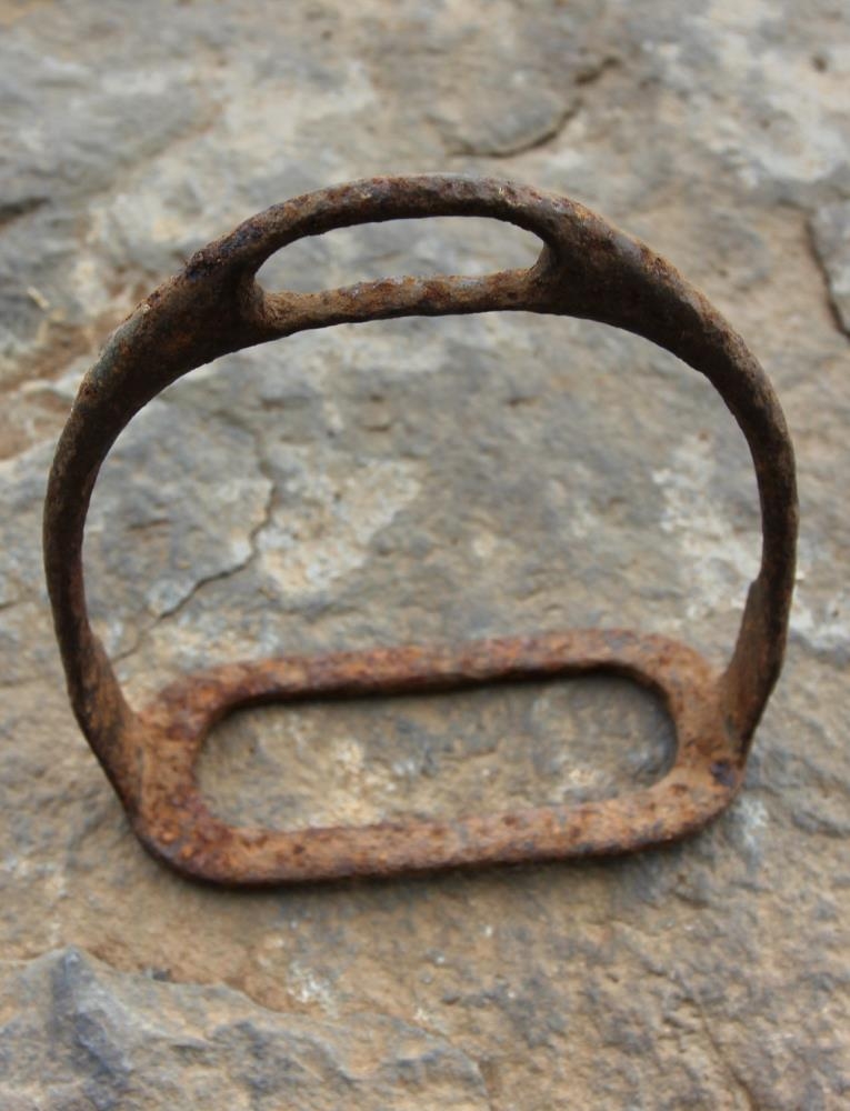 Ístað úr járni. Ryðgað, gamalt og smíðað úr litlu efni. Nett smíði og grannt í öllum hlutum ístaðsins. Stærð 12 x 11 cm. Gat er fyrir ístaðsólina og opið í ilina.