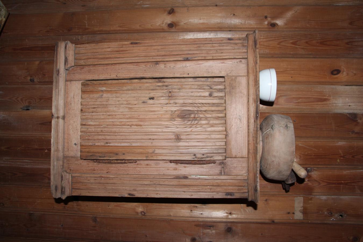 Bollaskápur úr furu, ómálaður og illa farinn. Hæð 55 cm, breidd 40 cm og dýpt 25 cm. Tvær hillur eru í skápnum, hurðin er ryðguð af hjörunum. Hurð ásamt speldum með köntum, að framan eru fjalirnar strikaðar eða greiptar þannig að þær eru mynstraðar með raufum. Skápur þessi virðist vera mjög gamall, en það þarf ekki að vera því hann stóð fyrir opnum gluggum. Gefendur eru Ingibjörg, Monika og Þórunn Jónasardætur. Úr búi Haraldar Jónassonar og Ingibjargar Bjarnadóttur á Völlum.