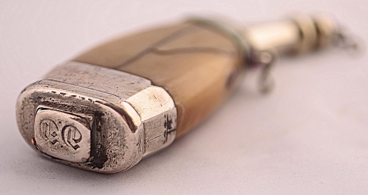 Tóbaksponta úr hvaltönn, silfurbúin, 12,7 cm löng. Hún er flatvaxin, 2 x 4,35 cm um miðju. Botninn er úr silfri og með hárri brún er nær upp á tönnina. Á botninum er ferhyrnt gat og lok á hjörum fyrir og á það grafið E. G., sem er fangamark Egils Gottskálkssonar er lengst bjó að Völlum (d. 1887), en pontan er úr eigu hans. Stúturinn er sívalur efst en sporbaugslaga að neðan og gengur brúnin upp á tönnina. Tappinn er 3,4 cm langur og hnúður á honum og hringur á endanum. Keðjuna vantar að mestu. Tönnin er brotin og vantar á einum stað litla flís í, en þó eigi svo að gat sé.