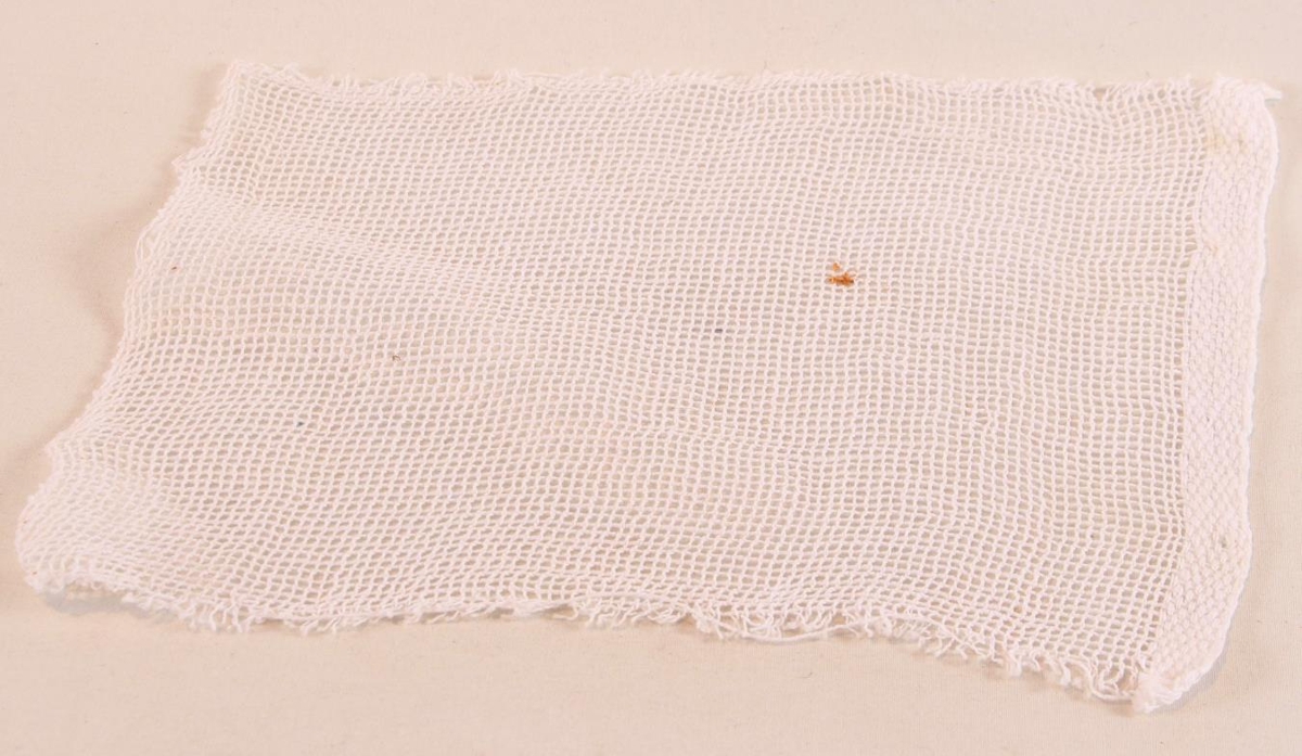 Netefni 15 x 24 cm, stórt. Úr hvítri bómull. Bútur úr efni. Það er gegnsætt og trúlega afgangur af eldhúsgardínu.