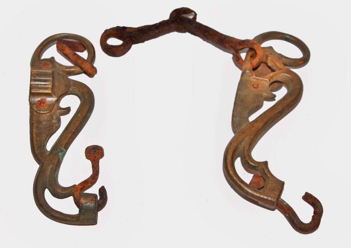 Koparstangir með járnmélum. Hver stöng er fremur stutt, 13,5 cm. Mélin eru 11 cm. Mikið ryðguð. Stangirnar eru mjög eyddar við mélin og greinilega gamlar. Íslensk smíð.