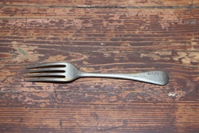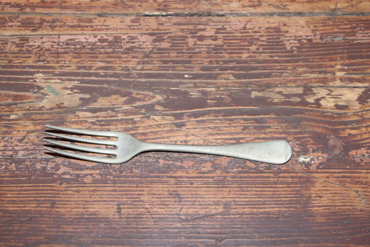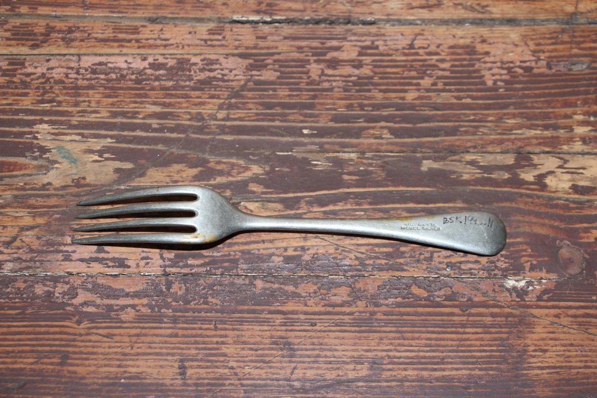 Gaffall úr silfri, lengd 21,5 cm, mjög eyddur. Með brúnum er afmáð strikamunstur. Neðan á haldinu, á endanum er eins og lítið brot. Stimpillinn er mjög máður en virðist vera: „EMN3“. Gaffallinn er úr búi Ingibjargar Bjarnadóttur frá Völlum. Gefendur eru barnabörn hennar.