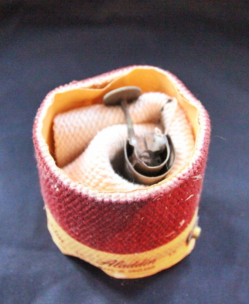 Lampakveikur, alveg eins og nr. 1991: 243-1278. Kveikurinn er úr hvítum bómullarþræði og enn sem nýr í boxinu. Á kassanum stendur: „Aladdin Model (Super Aladdin) 14 Wick.“ Á boxinu eru leiðbeiningar um hvernig setja eigi kveikinn í lampann. Gefendur eru Ingibjörg, Monika og Þórunn Jónasardætur. Úr búi Haraldar Jónassonar og Ingibjargar Bjarnadóttur á Völlum.