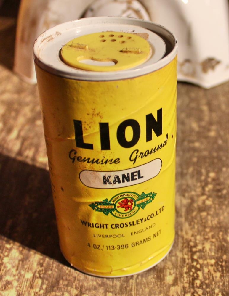 Gulur baukur úr pappa undan kanil. Nýlegur „LION“.