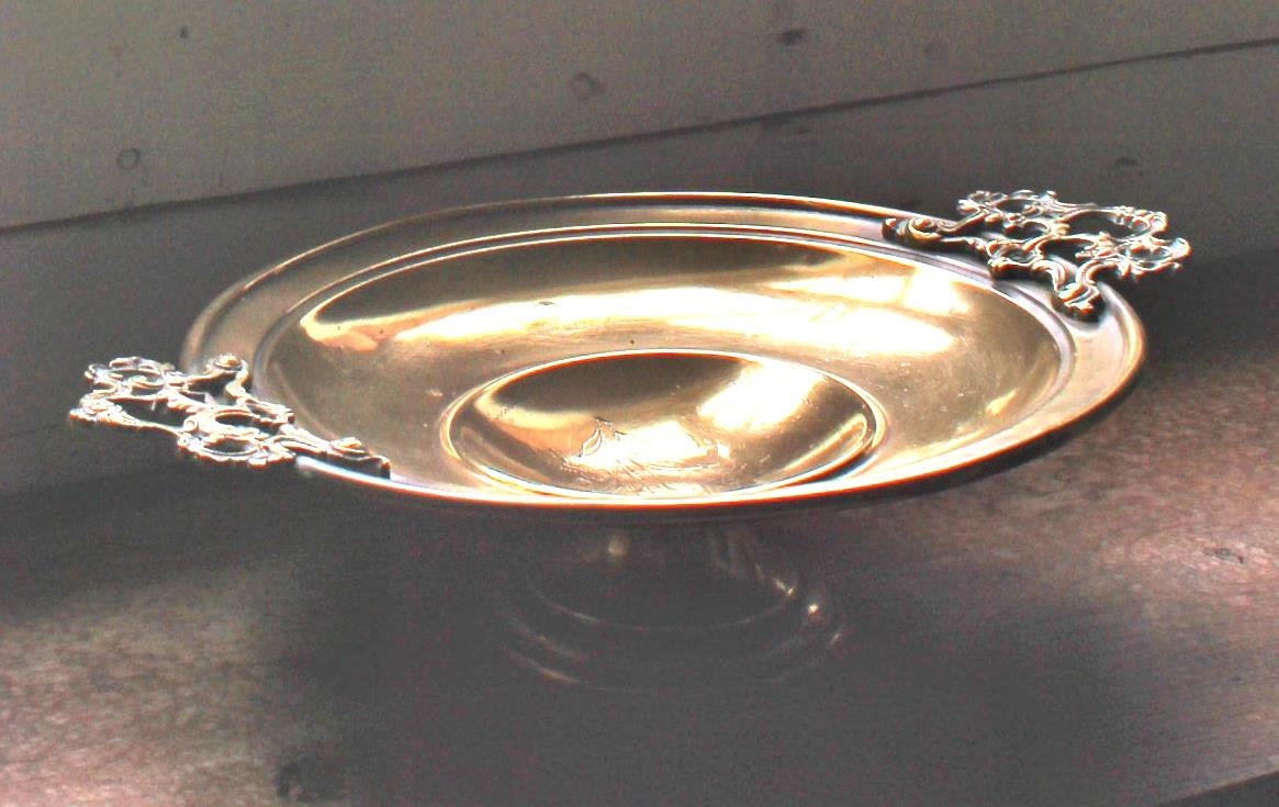 Kökufat úr látúni, kringlótt og stendur á fæti. Það er um 23 cm í þvermál og um 7,5 cm hátt frá borði, botninn íhvolfur og í hann grafin blóm og fiðrildi. Fóturinn er 9,2 cm í þvermál. Tvö eyru eru skrúfuð á barmana, þau eru talsvert útflúruð og gagnskorin. Mesta lengd milli eyrnanna er 31 cm. Fatið er erlent og eigi gamalt.