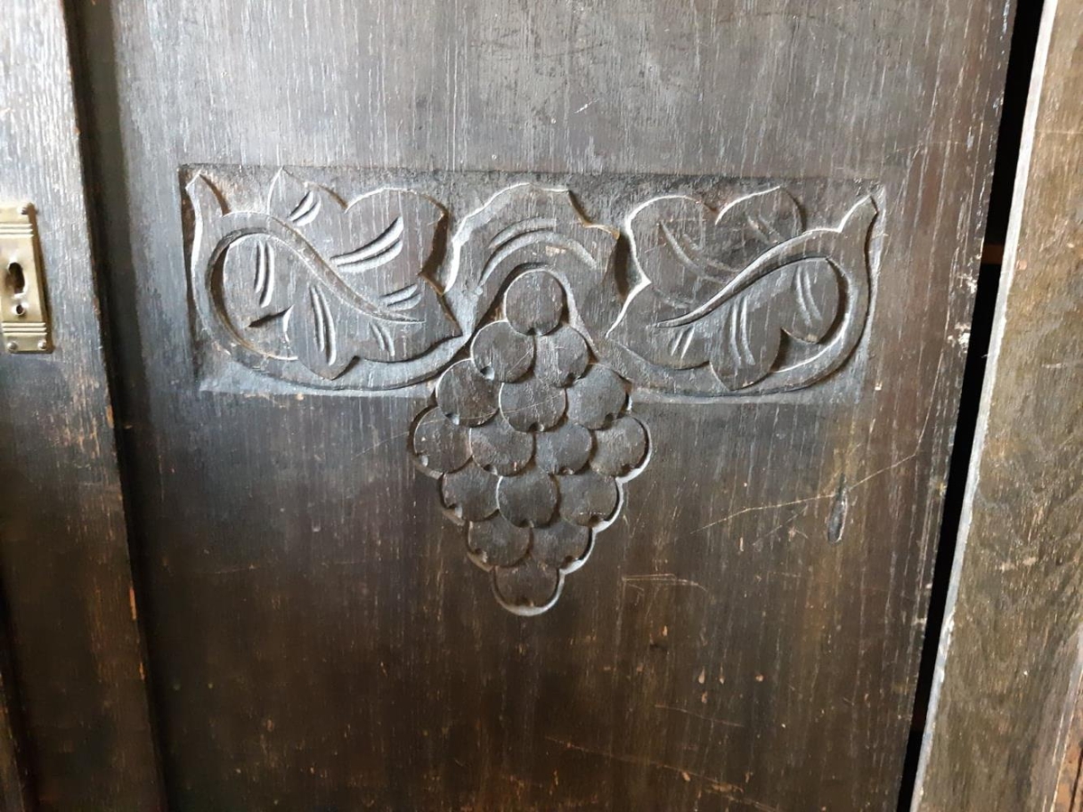 Stofuskápur 1,8 m á hæð, með útskurði á hurð.