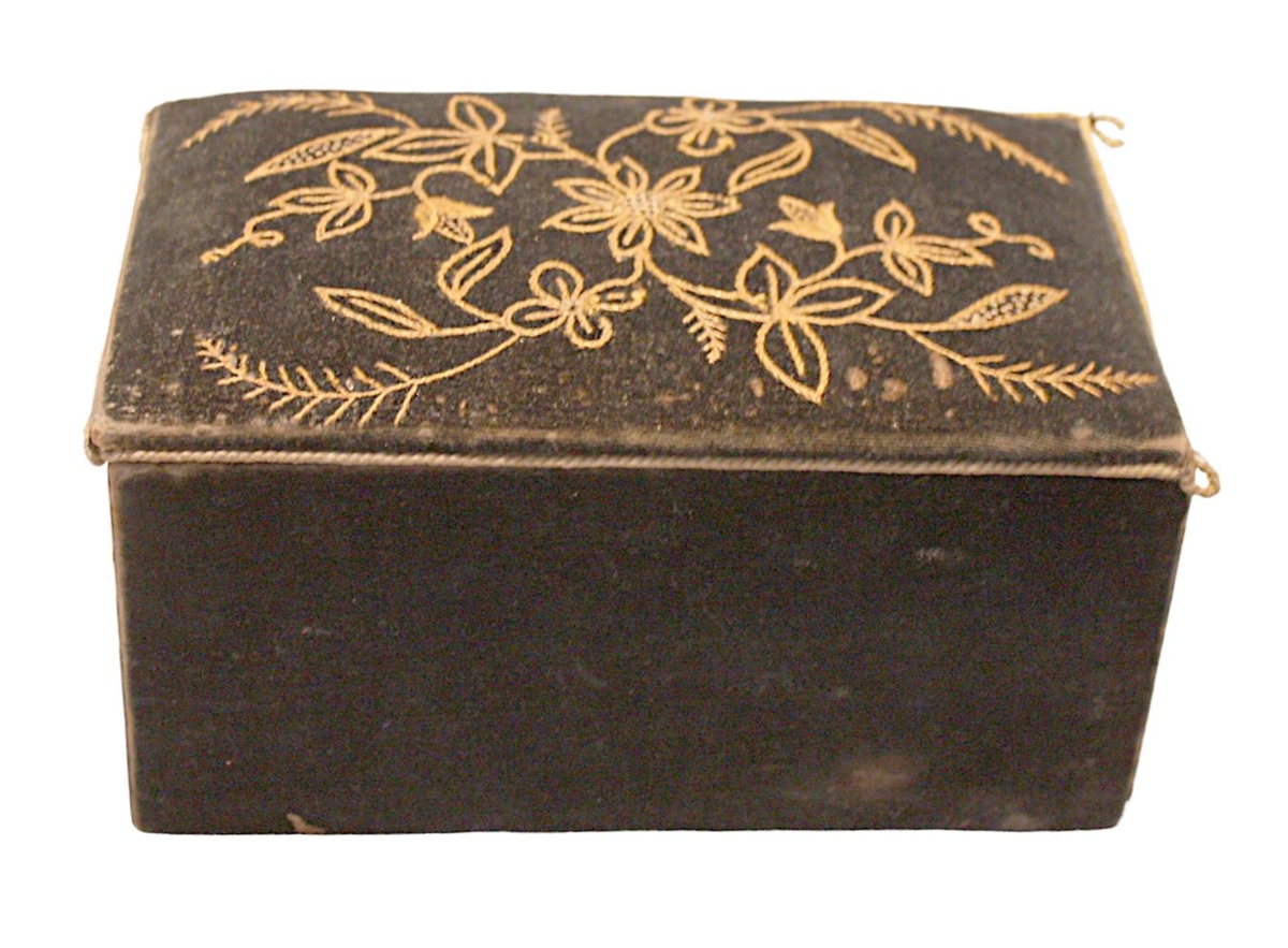 Einnig fylgir flauelsklædd askja með útsaumi á loki,sem slör og koffur var geymt í. Ingibjörg mun hafa eignast kyrtilin sem ung heimasæta í Arnarbæli í Grímsnesi, en faðir hennar séra Ísleifur Gíslason lét sauma hátíðarbúninga á allar dætur sínar.