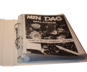 Hvít mappa með spjöldum, hefur líklega verð gerð af kennurum sérdeildar Brekkubæjarskóla